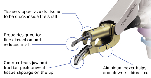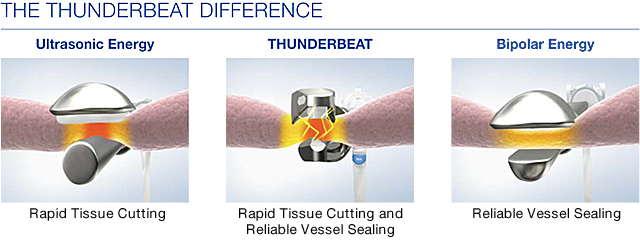 THUNDERBEAT is the integrated bipolar and Ultrasonic Energy deliverd simultanously from a single, multi-functional instruments. The integration deliveres the widely recognized benefits of each types of energy.